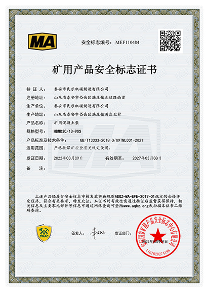 HBMG30/10-45S礦用產(chǎn)品安全標(biāo)志證書
